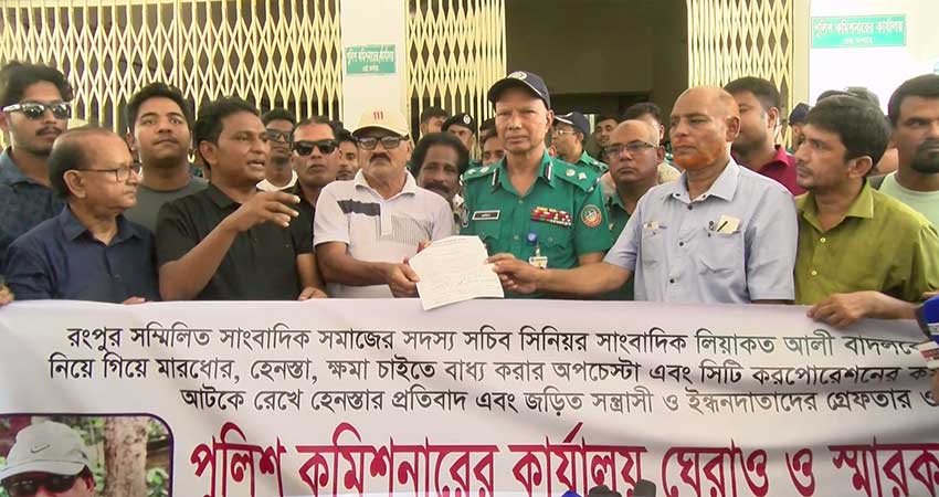 রংপুরে সিনিয়র সাংবাদিক লিয়াকত আলী বাদলকে অপহরণ করে সিটি কর্পোরেশনে নির্যাতন, প্রধান নির্বাহী কর্মকর্তার কাছে ক্ষমা চাইতে বাধ্য করার চেষ্টা, মব তৈরি করে সাংবাদিকদের মারধর এবং হেনস্থার মামলার আসামীদের গ্রেফতারের দাবিতে মহানগর পুলিশ কমিশনার কার্যালয় ঘেরাও কর্মসূচি পালন করেছেন গণমাধ্যমকর্মীরা। সেখান থেকে অপহরণ ও হামলাকারীদের তিনদিনের মধ্যে গ্রেফতারের আল্টিমেটাম দেন তারা।