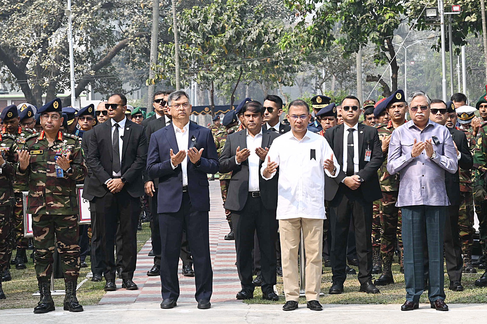 এসময় সেখানে আরও উপস্থিত ছিলেন স্বরাষ্ট্রমন্ত্রী সালাহউদ্দিন আহমদ ও তিন বাহিনীর প্রধানরা।